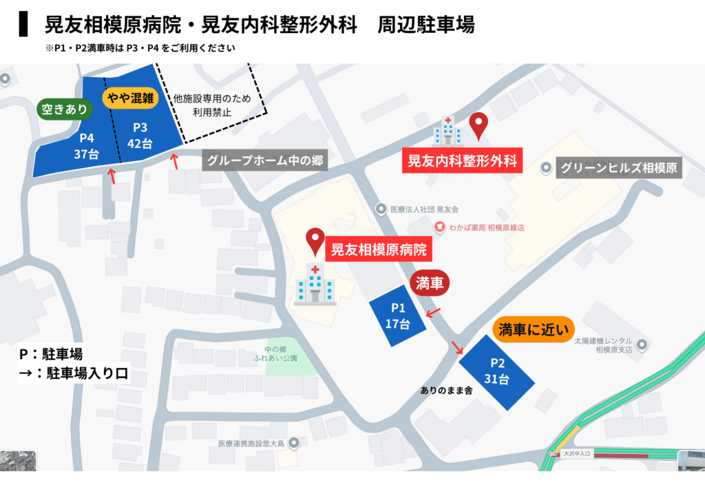 駐車場場所・晃友相模原病院 駐車場(コンクリート)